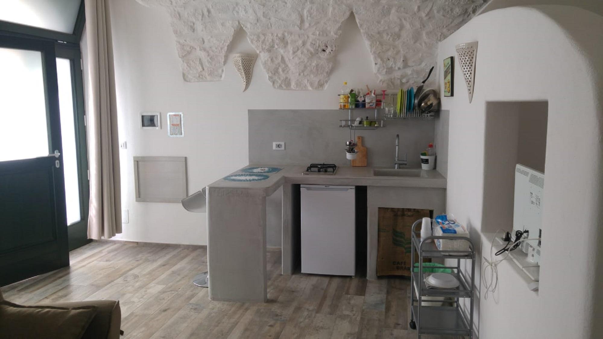 La costruzione in pietra, al piano terra, imbiancata con la tipica calce ostunese, consente di godere durante l’estate del fresco naturale tipico della pietra locale.